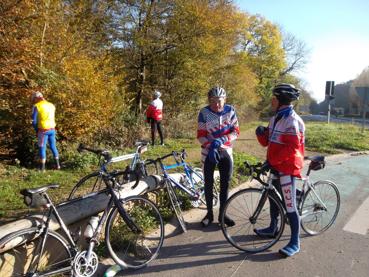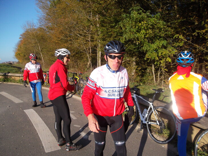 Une sortie club avec le premier froid de l’automne, tout juste 4° ce matin au rdv Pont de Charaintru, après au rdv du Déluge onze cyclos était réunis pour cette randonnée, Didier Bourgeois, Bernard Jean, Gabriel Argueyrolles, Yves Pilorge, Michel Vincent, Gérard Leconte, Jean Marc Fusay, Pierre Leyssenne, André Cazals, Yves Daniellou et moi.