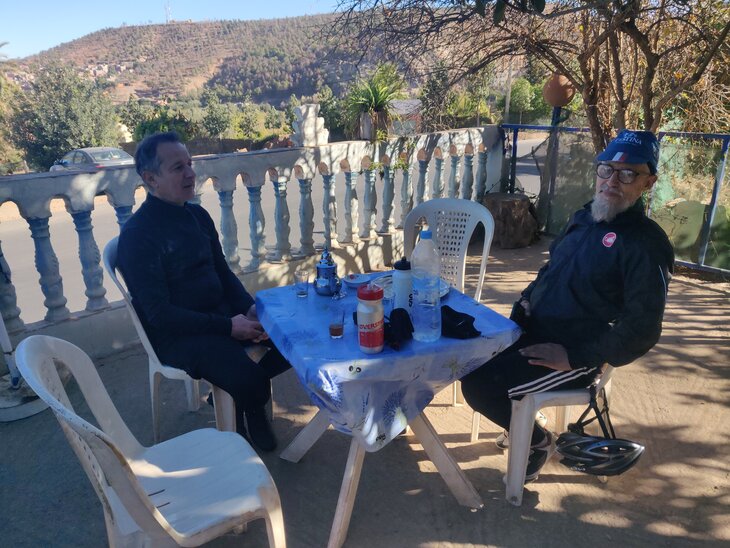 Nous avons rdv chez Hajj le rdv des cyclistes marocains avec Abdellah sur la route de l’Ourika donc la sortie se poursuit avec des hauts et des bas.