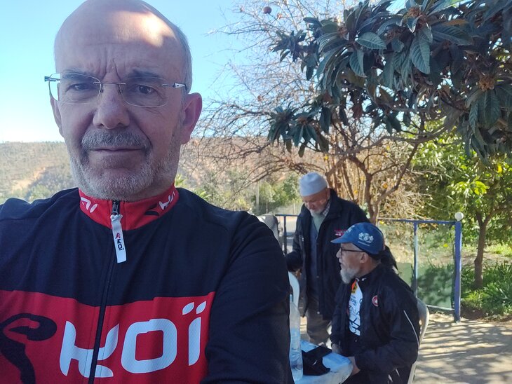 Une pose s’impose au km 20 ? jamais je ne fais une pose entre Marrakech et Tahanaout c’est que vraiment je ne me sens pas bien Gilles me demande si l’on continue ou pas ?