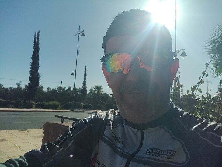 Le retour sur Marrakech une trentaine de kilomètres n’est pas aussi simple que Tahanaout, retrouvé une bande cyclable pas avant 10 à 15 km ! pas évident d’être en sécurité.