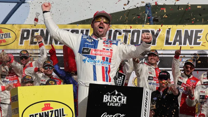 Alors qu’il dispute sa cinquième course avec la Wood Brothers Racing, Josh Berry n’en finit plus de s’améliorer. Quatrième la semaine dernière sur le Phoenix Raceway pour ce qui était à date son meilleur résultat en carrière, il décroche sur le Las Vegas Motor Speedway sa toute première victoire dans la discipline au terme d’une lutte avec Daniel Suárez dans les derniers tours.